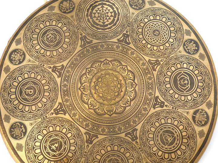 Eindrucksvoller tibetischer Gong (hergestellt in Nepal). Aufwendig