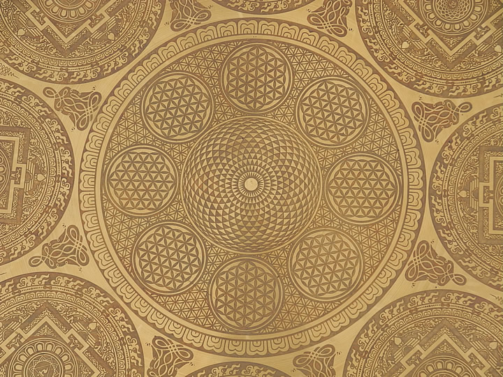 schöner, reich mit tibetischen Mantras und Glückssymbolen, der Blume des Lebens sowie Ornamenten