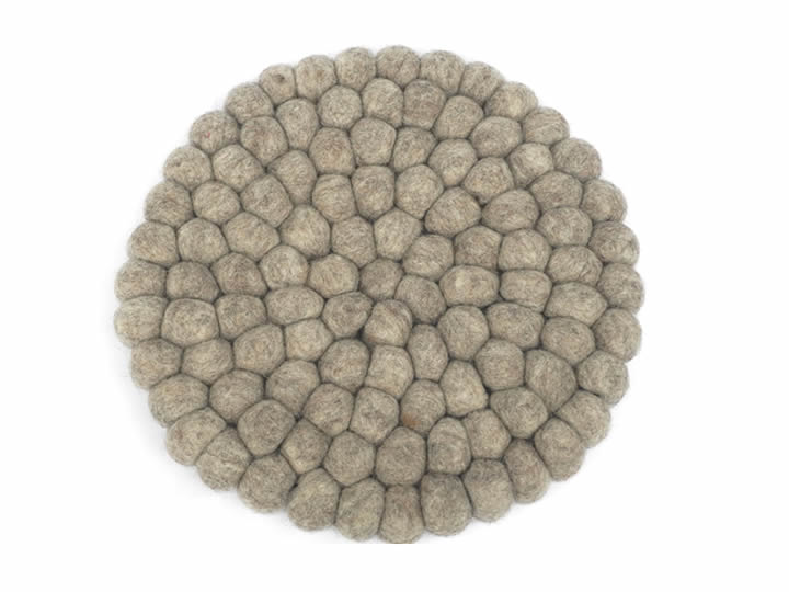 Bei diesem Kissen werden in aufwendiger Handarbeit viele kleine Filzkugeln zusammengenäht.