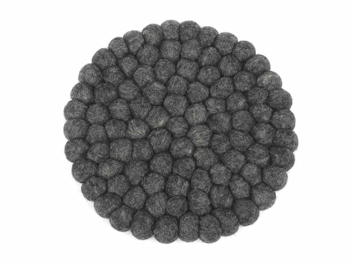Bei diesem Kissen werden in aufwendiger Handarbeit viele kleine Filzkugeln zusammengenäht.