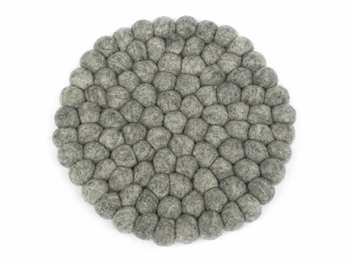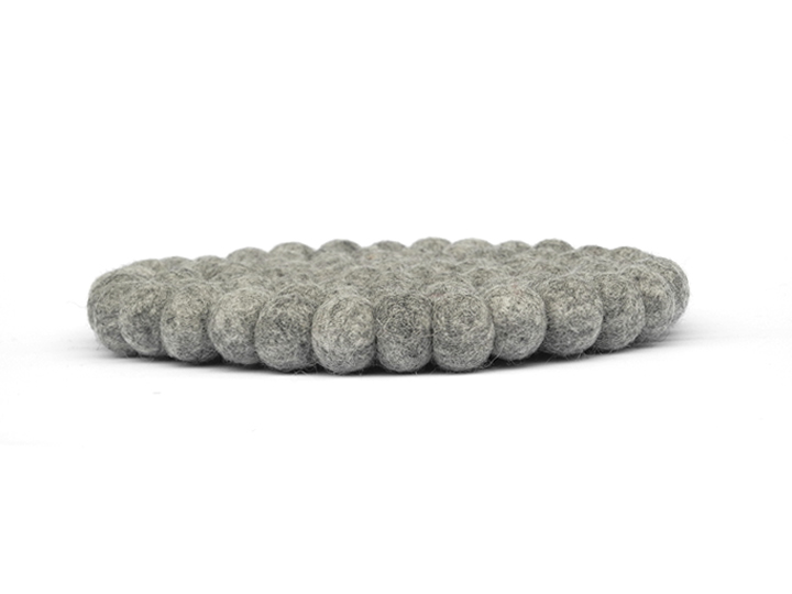 Bei diesem Kissen werden in aufwendiger Handarbeit viele kleine Filzkugeln zusammengenäht.