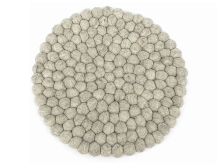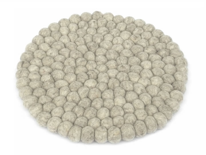 Bei diesem Kissen werden in aufwendiger Handarbeit viele kleine Filzkugeln zusammengenäht.