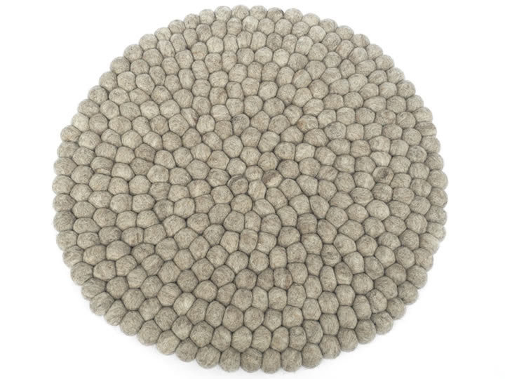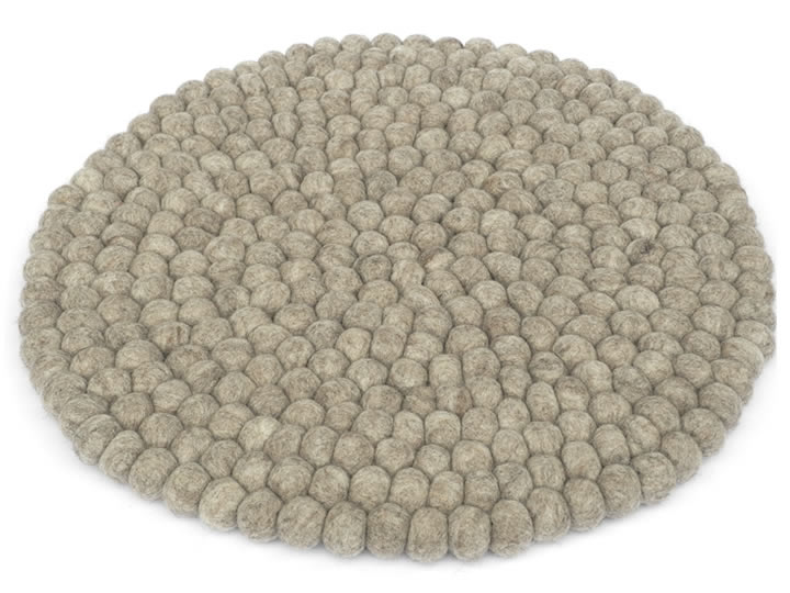 Bei diesem Kissen werden in aufwendiger Handarbeit viele kleine Filzkugeln zusammengenäht.