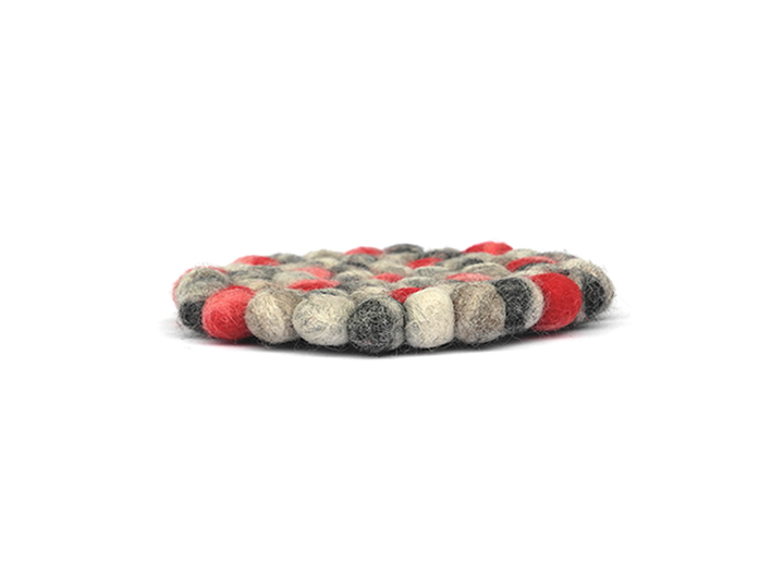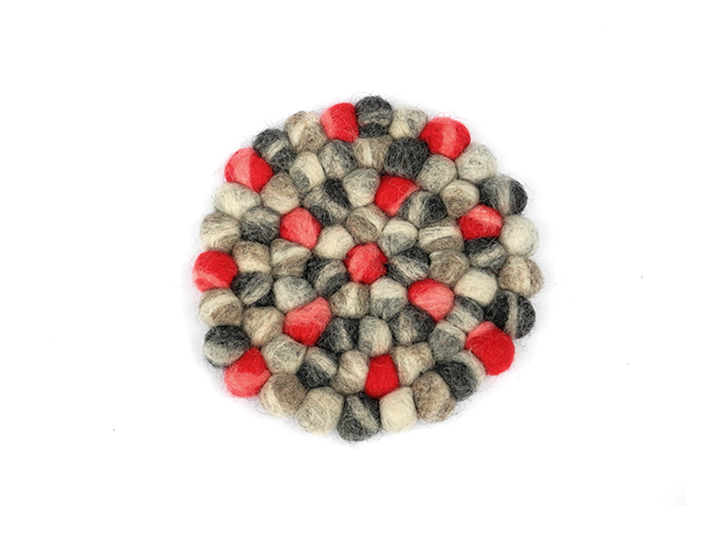 Bei diesem Kissen werden in aufwendiger Handarbeit viele kleine Filzkugeln zusammengenäht.