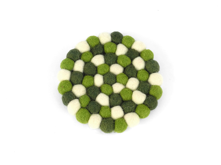 Bei diesem Kissen werden in aufwendiger Handarbeit viele kleine Filzkugeln zusammengenäht.
