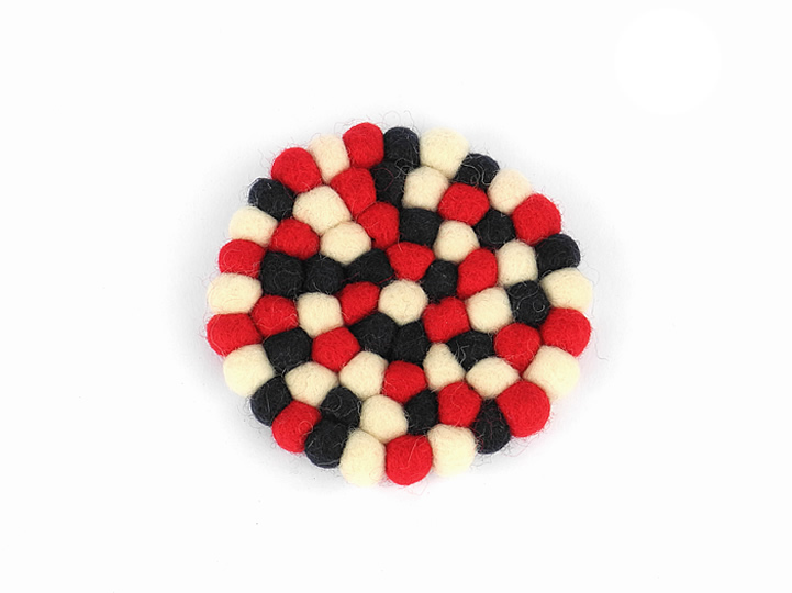 Bei diesem Kissen werden in aufwendiger Handarbeit viele kleine Filzkugeln zusammengenäht.