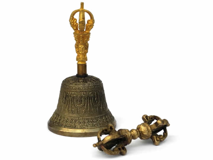 Der Donnerkeil, auch Dorje genannt (tibetisch: Vajra) und die Tempelglocke (Ghanta) sind wichtige Symbole im tibetischen Buddhismus. Getrennt sind sie Gegenpole (Dorje = männlich; Ghanta = weiblich), gemeinsam repräsentieren sie die Verschmelzung von Mittel und Weisheit.