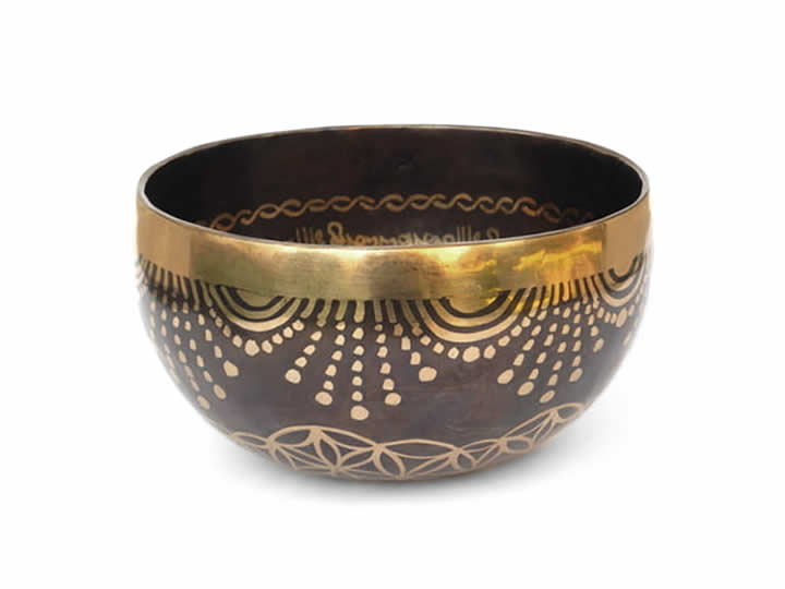 Tibetische Klangschale 880 Gr. Buddha-Gravur "Weiße Tara"