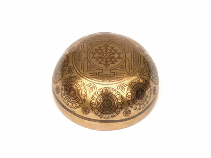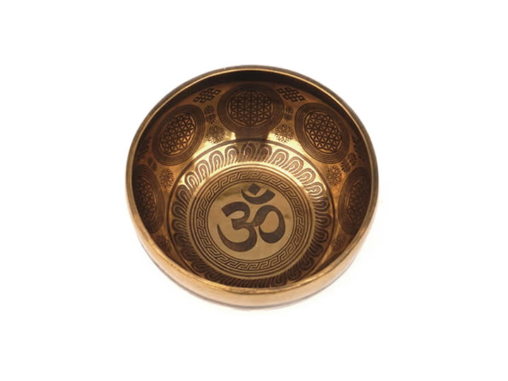 Sehr schön verziert mit der Blume des Lebens, dem OM-Zeichen, den sieben Chakren-Symbolen, Ornamenten und Mantras