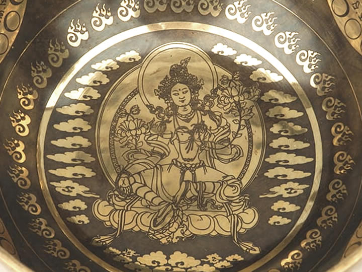 Tibetische Gravur Klangschale 1110 Gr. Buddha "Grüne Tara"