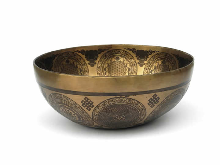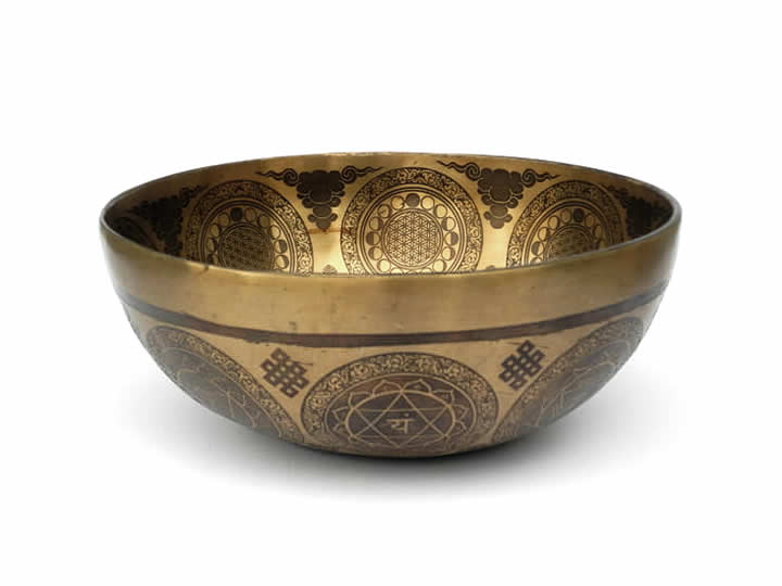 Wunderschön verziert u. a. mit der Blume des Lebens, den sieben Chakren-Symbolen, Mantren, Ornamenten und tibetischen Schriftzeichen