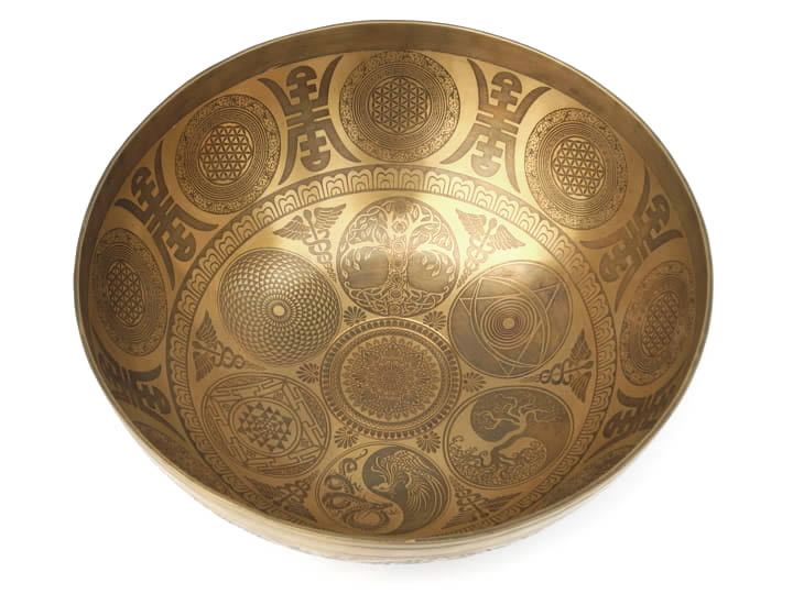 Tibetische Gravur Klangschale 1415 Gr. - tiefer Klang