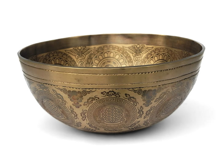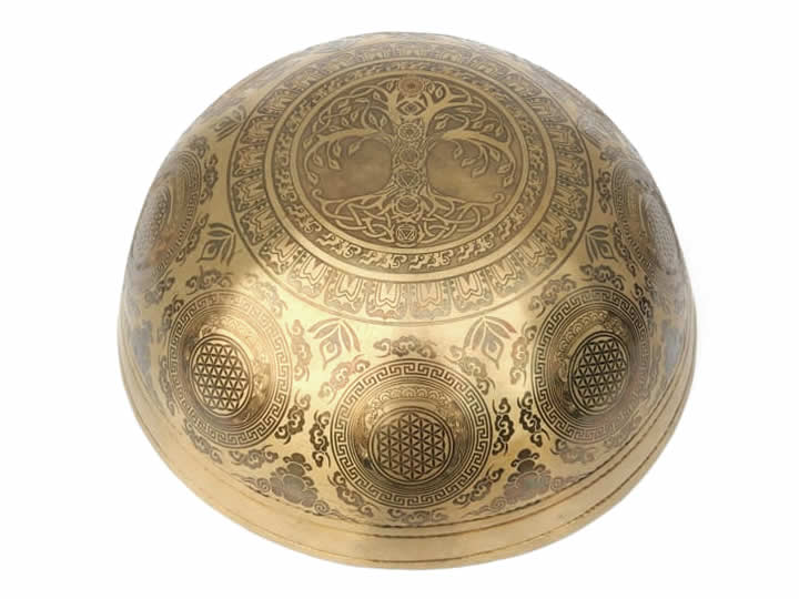 Sehr stilvoll verziert mit der "Blume des Lebens", den sieben Chakren-Symbolen, dem Baum des Lebens sowie vielen Ornamenten und Mantras.