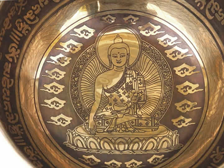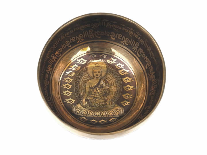 Tibetische Gravur Klangschale 600 Gr. mit Buddha "Shakyamuni"