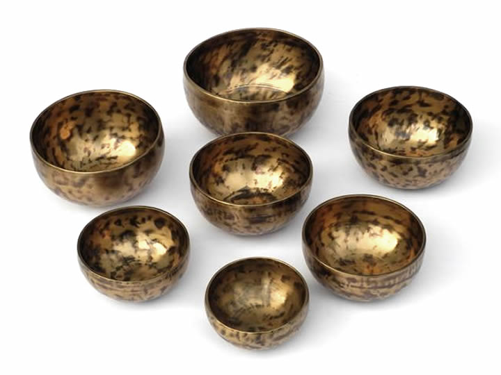 Dieses Klangschalenset schwingt auf der 4. Oktave