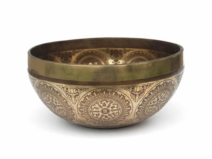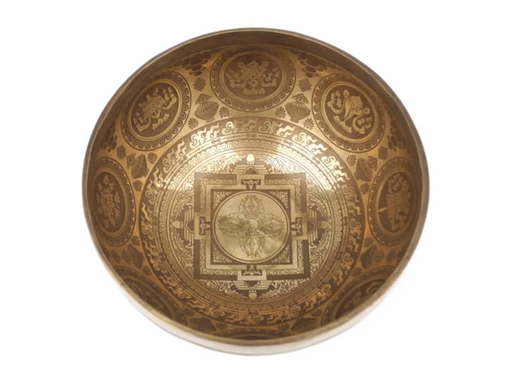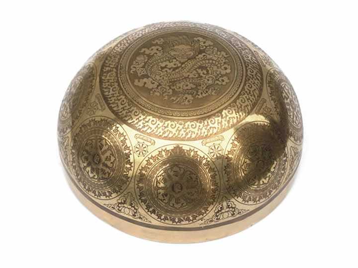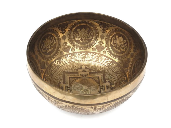Tibetische Gravur Klangschale 1010 Gr. Mondknoten + Platonisches Jahr