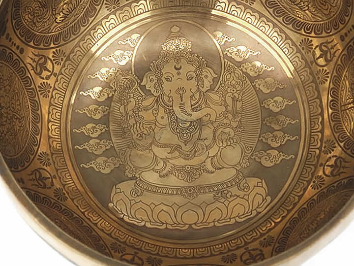 Tibetische Klangschale 875 Gr. Siderischer Mond + Hopi Herz Gravur "Ganesh"